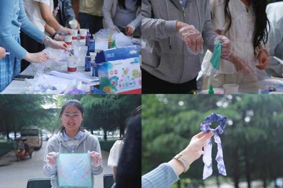 英国365集团官网门前的平台上,平铺着五彩斑斓的扎染手帕。无序的捆扎之间,带来的是惊喜和温暖;独特的图案之中,蕴含的是巧思和传承。“活动过程中,我感受到了大自然的韵律和生命的力量,我从来没想过自己可以做出来如此漂亮的扎染”,英国365集团官网2021级本科生王淑乐说,并向同学们展示了自己的扎染作品。