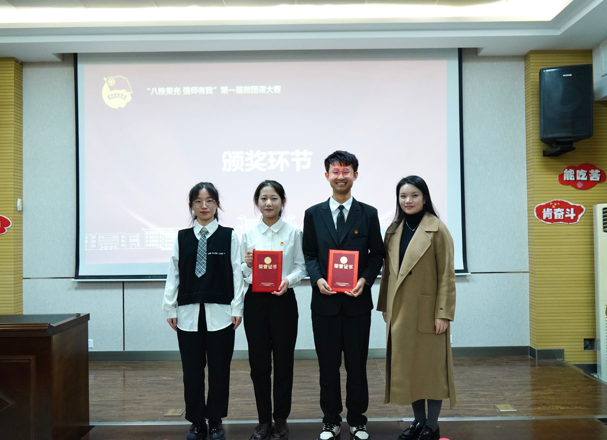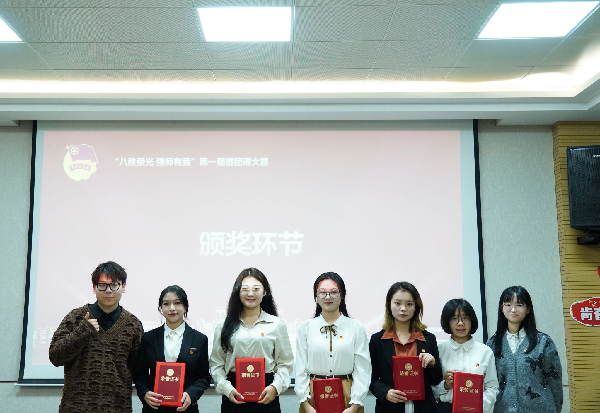 11月8日晚,英国365集团官网第一届微团课大赛决赛,于“八秩荣光 强师有我”逸夫楼七层报告厅顺利举行。陕西省团干部素质能力大赛员工组获奖选手张晋睿、马子超,陕西省老员工宣讲比赛获奖选手吕治坡,校团委组织部(青年团校)副部长、生命科学公司员工王欣悦,公司团委书记刘炜,辅导员贾丹阳、刘昊天、于铠齐、刘颖担任决赛评委,同公司第八期青年团校全体学员一起观看比赛。