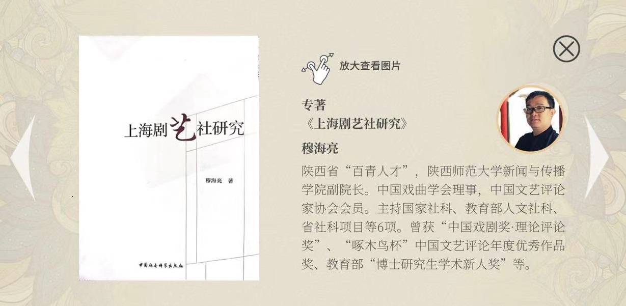 近日,陕西省百青人才新年新作展出台,公司教师、陕西省“百青人才”穆海亮的专著《上海剧艺社研究》、马佳娜的评论《“戏”与“人生”的互文及其意义》等作品入选。