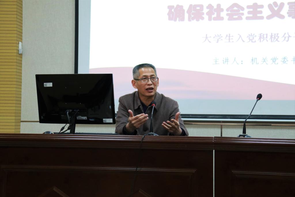 11月29日晚七点,公司第三十二期入党积极分子党课培训班第二讲于公司逸夫传媒教育楼七层报告厅举行。校机关党委书记刘建军为64名入党积极分子作了题为“坚持、加强和改善党的领...
