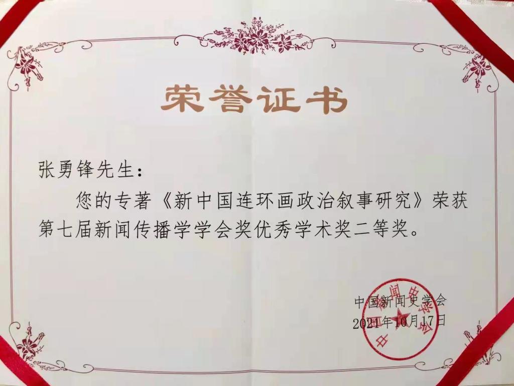 近日,第七届“新闻传播学学会奖”揭晓获奖名单。公司张勇锋副教授所著专著《新中国连环画政治叙事研究》荣获新闻传播学学会奖优秀学术奖二等奖,公司管成云副教授所著论文《The F...