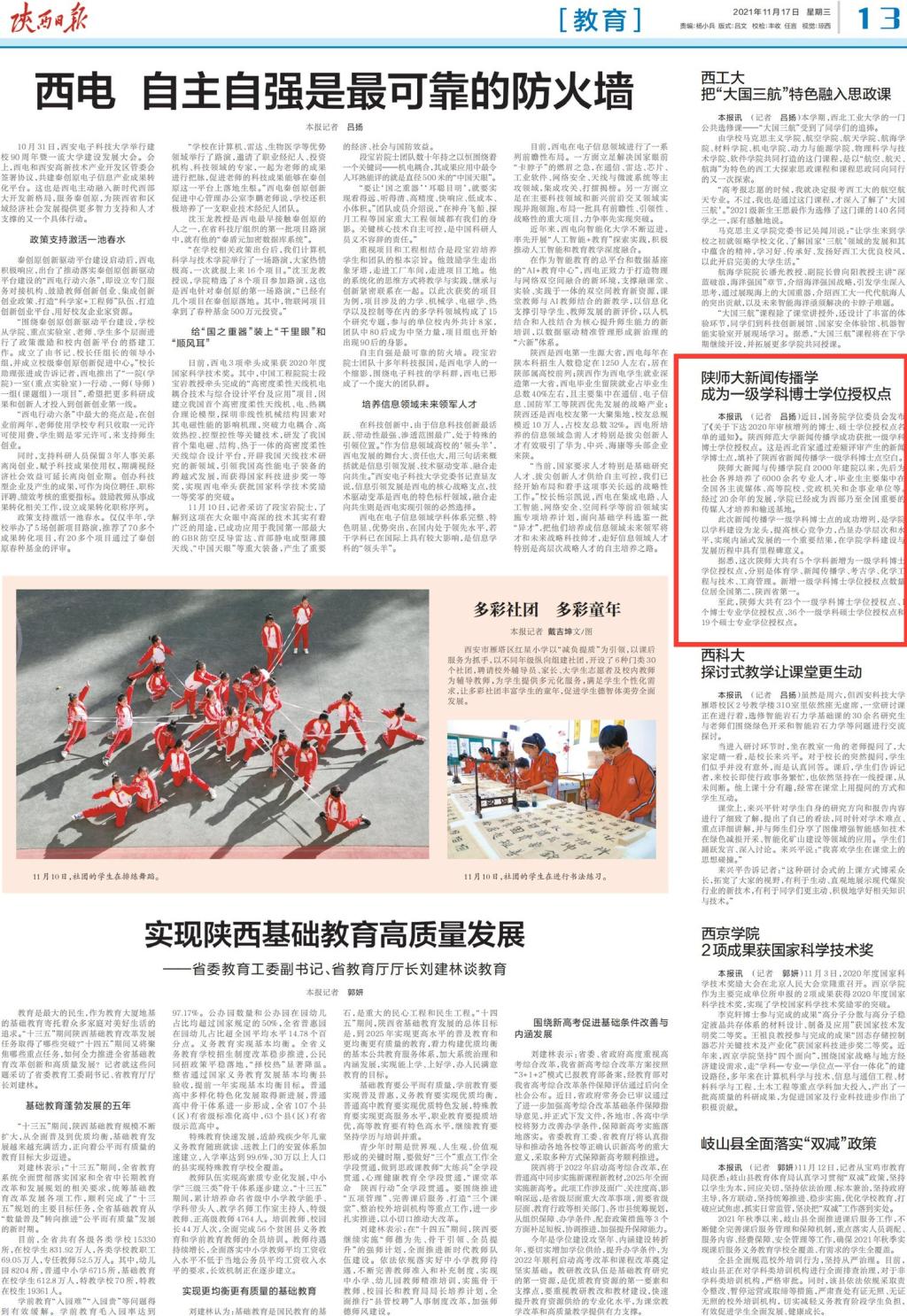 陕西日报等多家媒体报道公司新闻传播学获批一级学科博士学位授权点