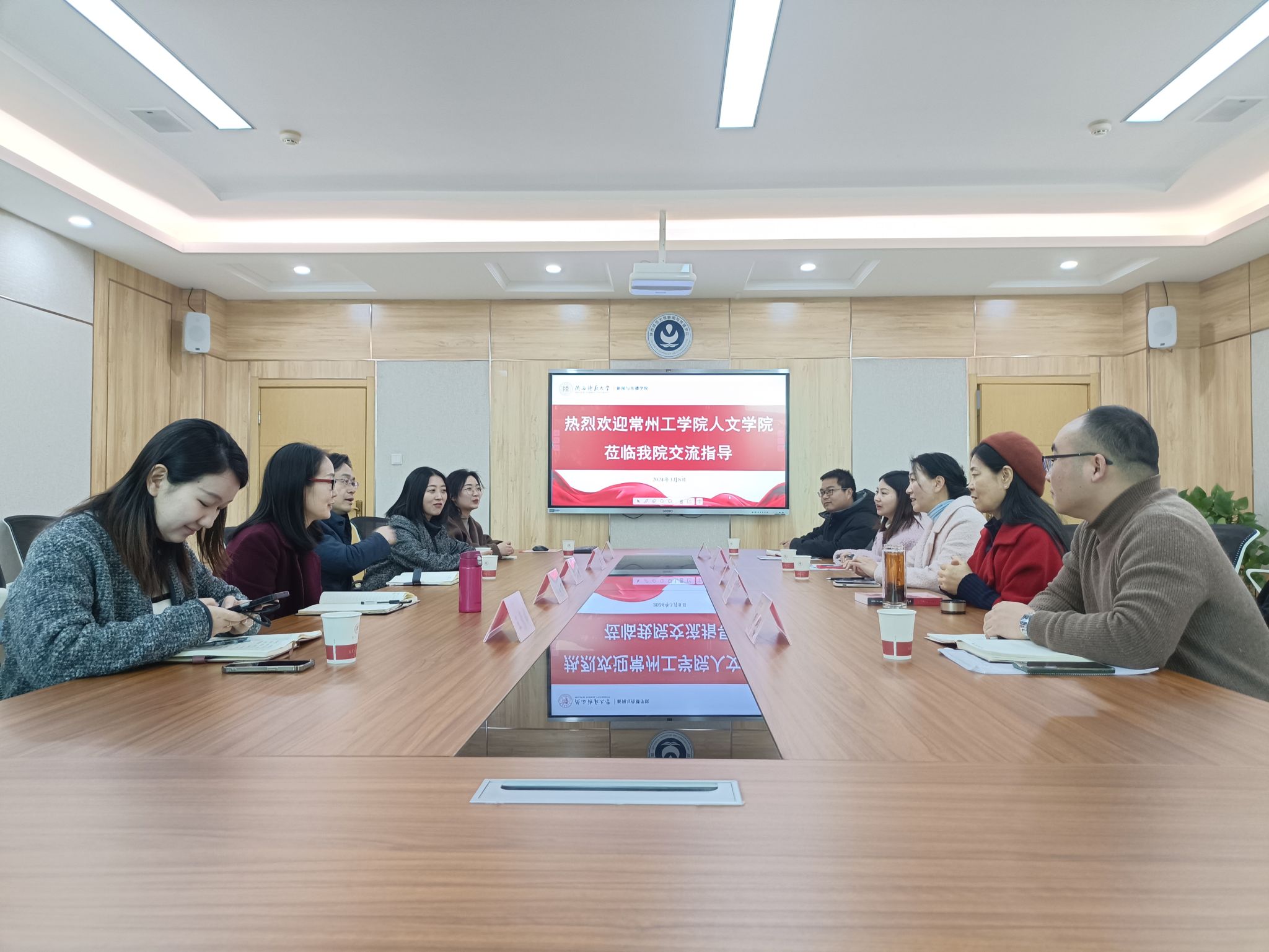 3月8日上午,常州工公司人文公司经理谢燕红、广播电视编导专业负责人印兴娣、办公室主任王艳、传媒系主任周彤、通识教学部主任郑久良一行五人前来公司考察交流,会议在逸夫传...
