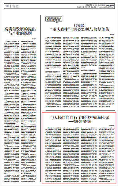 12月22日,《中国电影报》中国电影艺术研究中心电影文化研究部专版,刊发了公司教授牛鸿英的署名文章《与人民同向同行 在时代中砥砺心灵 ——电影<柳青>观后》。文章品评的是电...