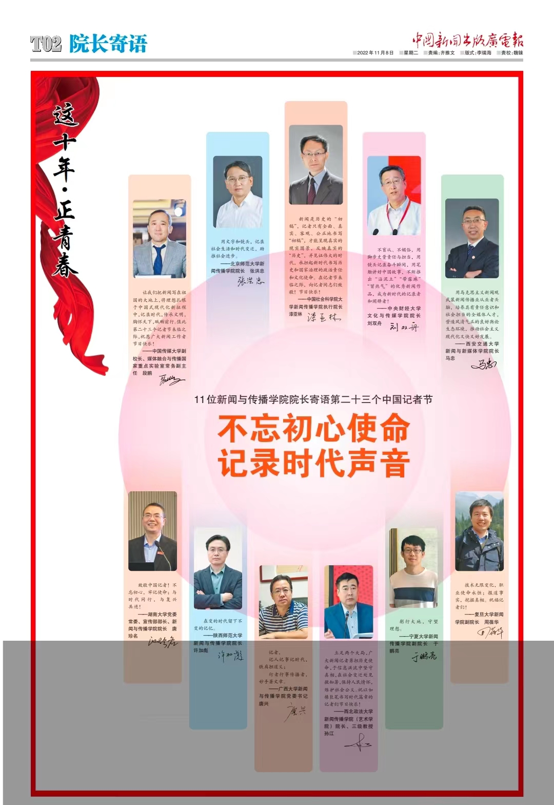 中国新闻出版广电报|11位英国365集团官网经理寄语第二十三个中国记者节