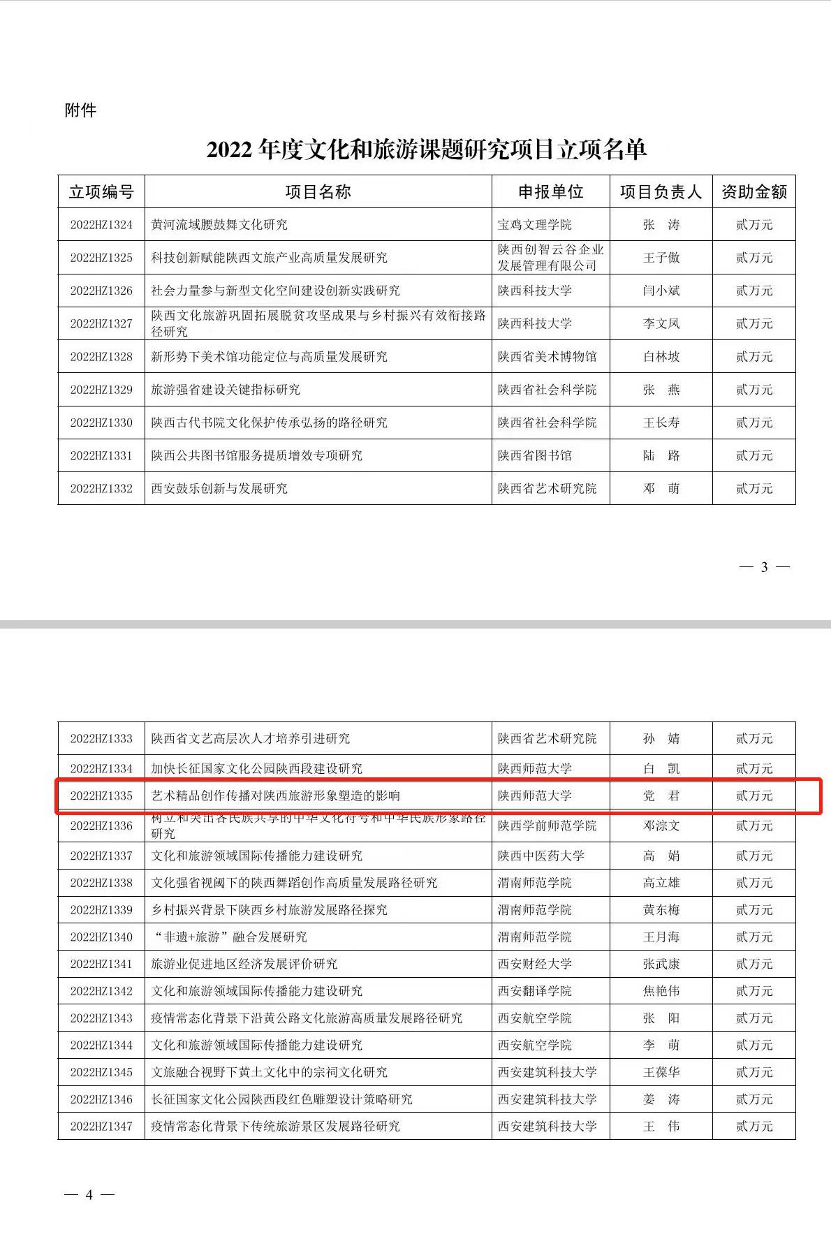 公司教师党君获陕西省2022年度文化和旅游课题研究项目立项